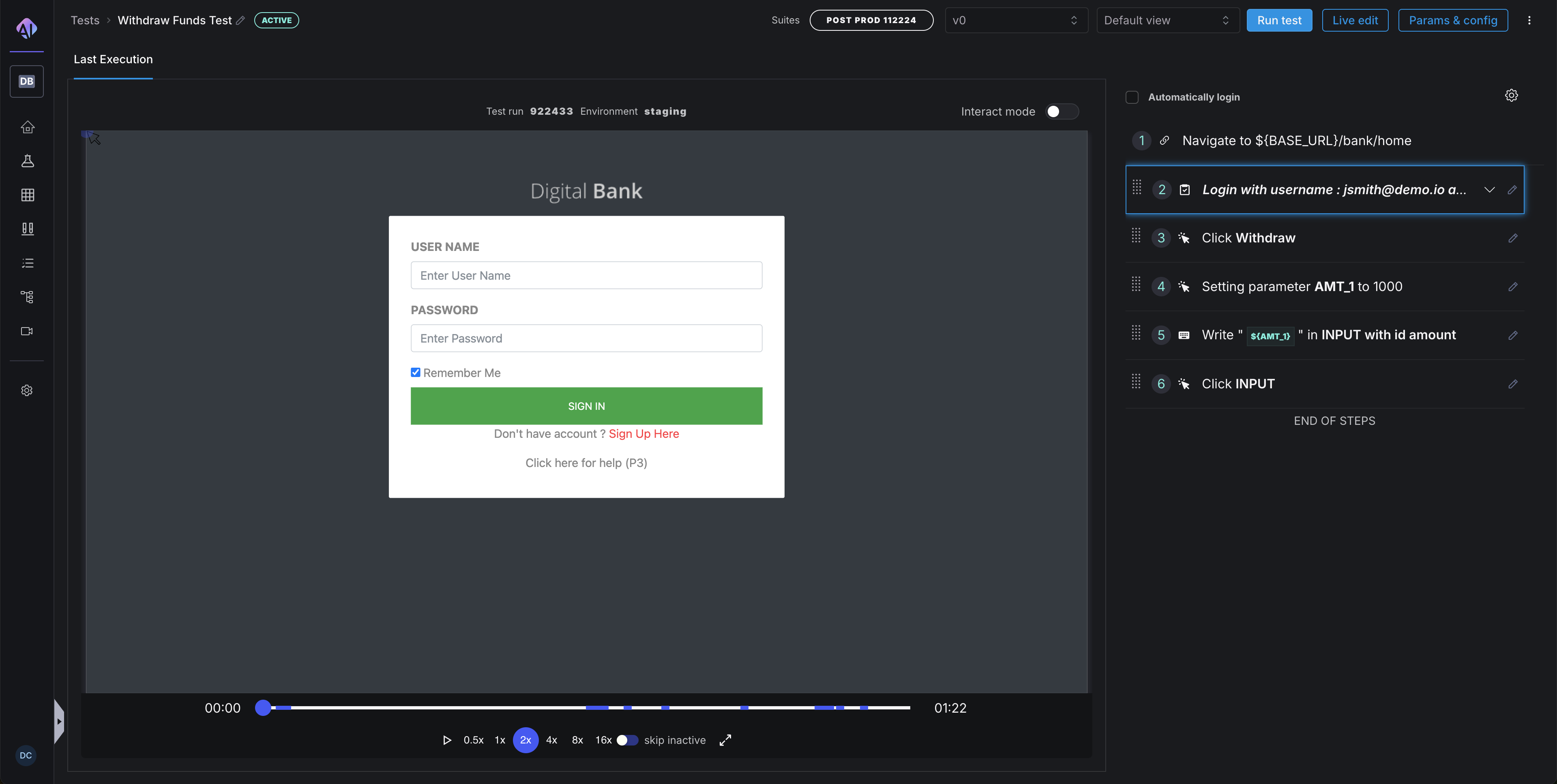 Live Edit provides a more comprehensive editing experience where each step is executed as you modify the test. This approach gives immediate feedback on whether your changes are working correctly.