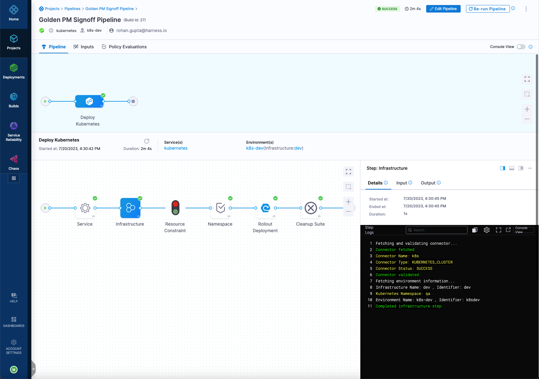- A Harness service, environment, and infrastructure definition.