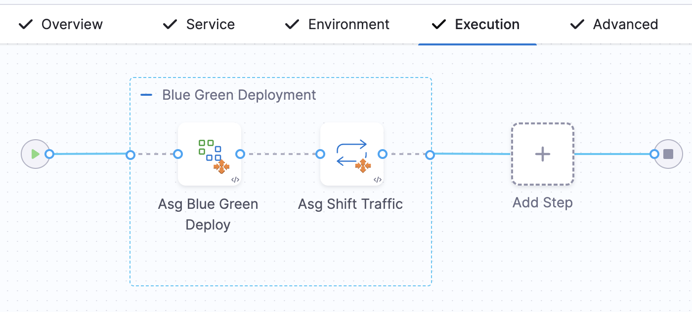 You can also start from a blank canvas and manually add ASG Blue Green Deploy Step and ASG Traffic Shift to your stage.