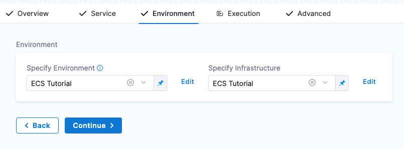 - Define your ECS container and service specs in Harness.