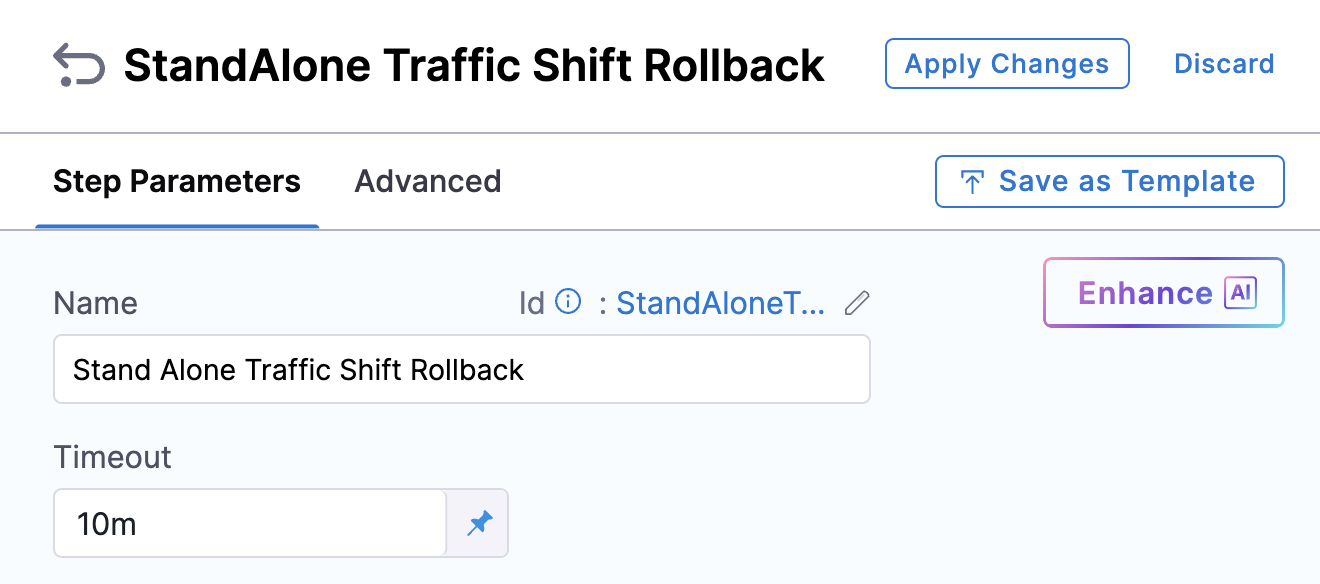 - Standalone Mode: Resets the original forward configuration for all listener rules used in the stage using the Standalone Traffic Shift Rollback step.