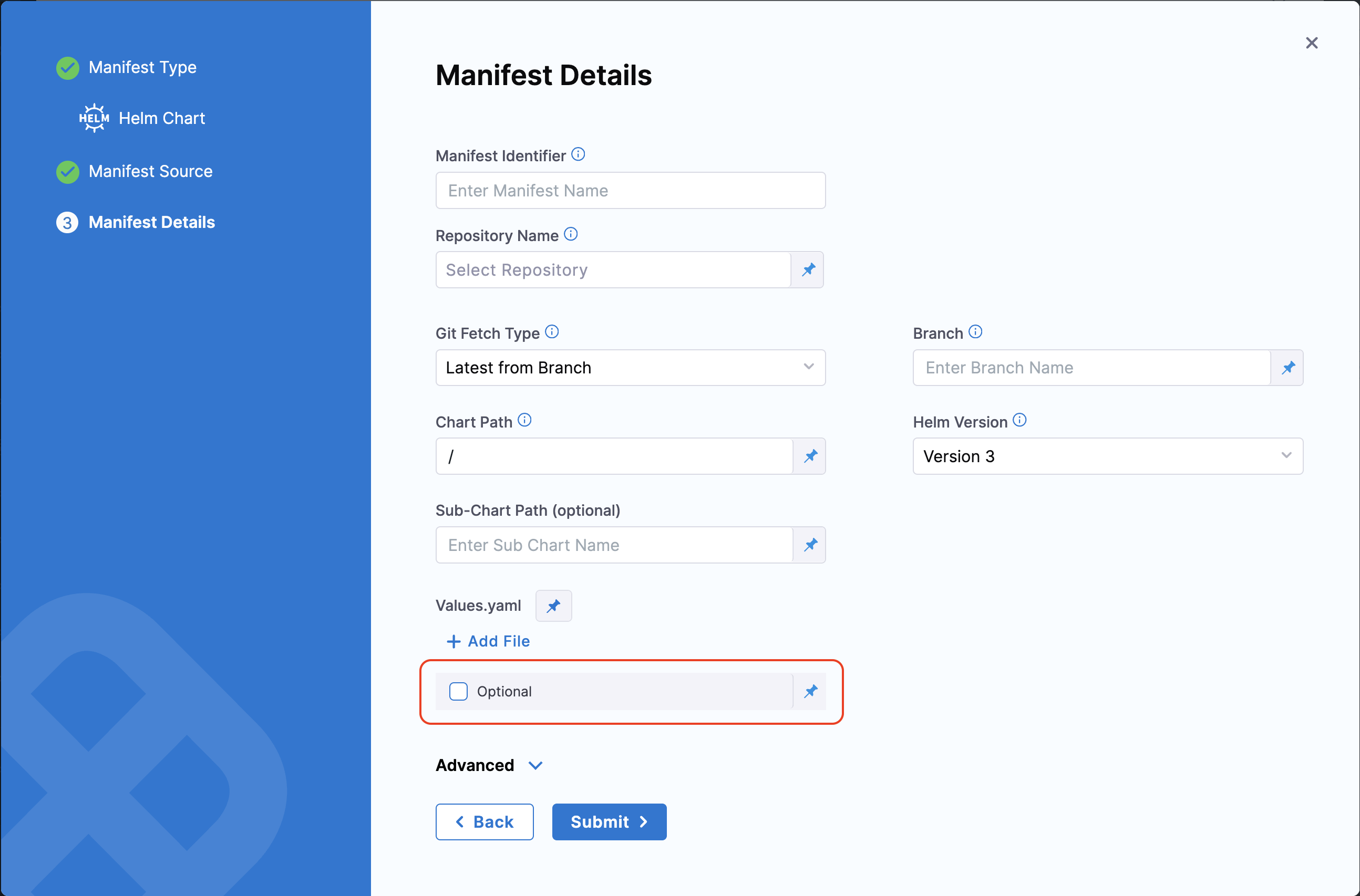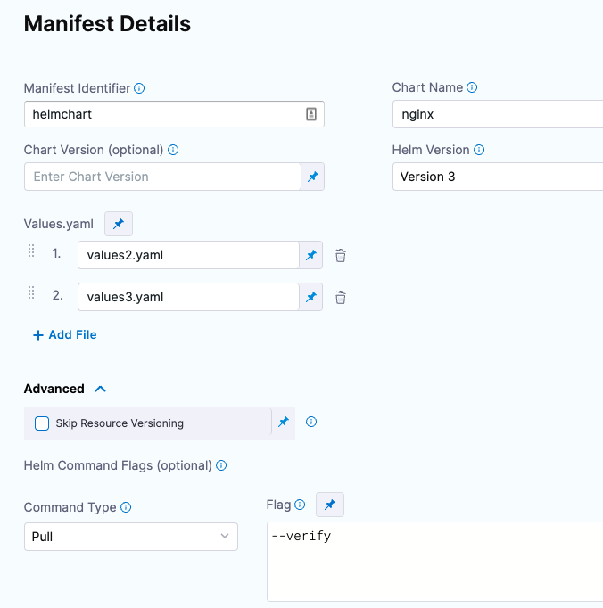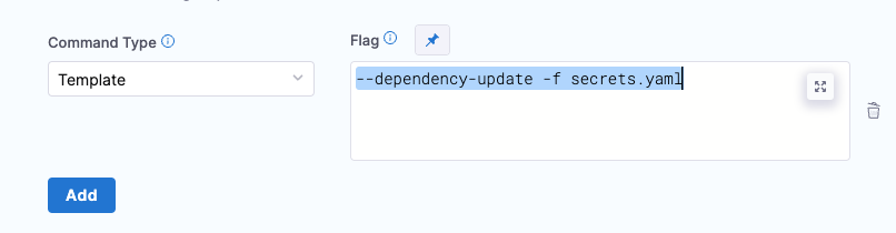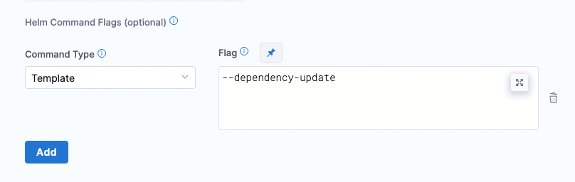 For Kubernetes with Helm deployments (as described in this topic), configure Helm Command Flags with the Template command type and