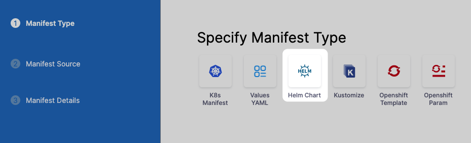 After you select the Cloud Provider option, you can configure the manifest details for fetching the chart from ECR: