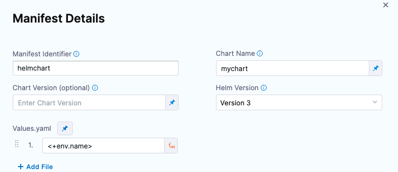 - You can define expressions for the Chart Name and Base Path settings, and, at runtime, Harness will resolve those expressions and let you pick a version.