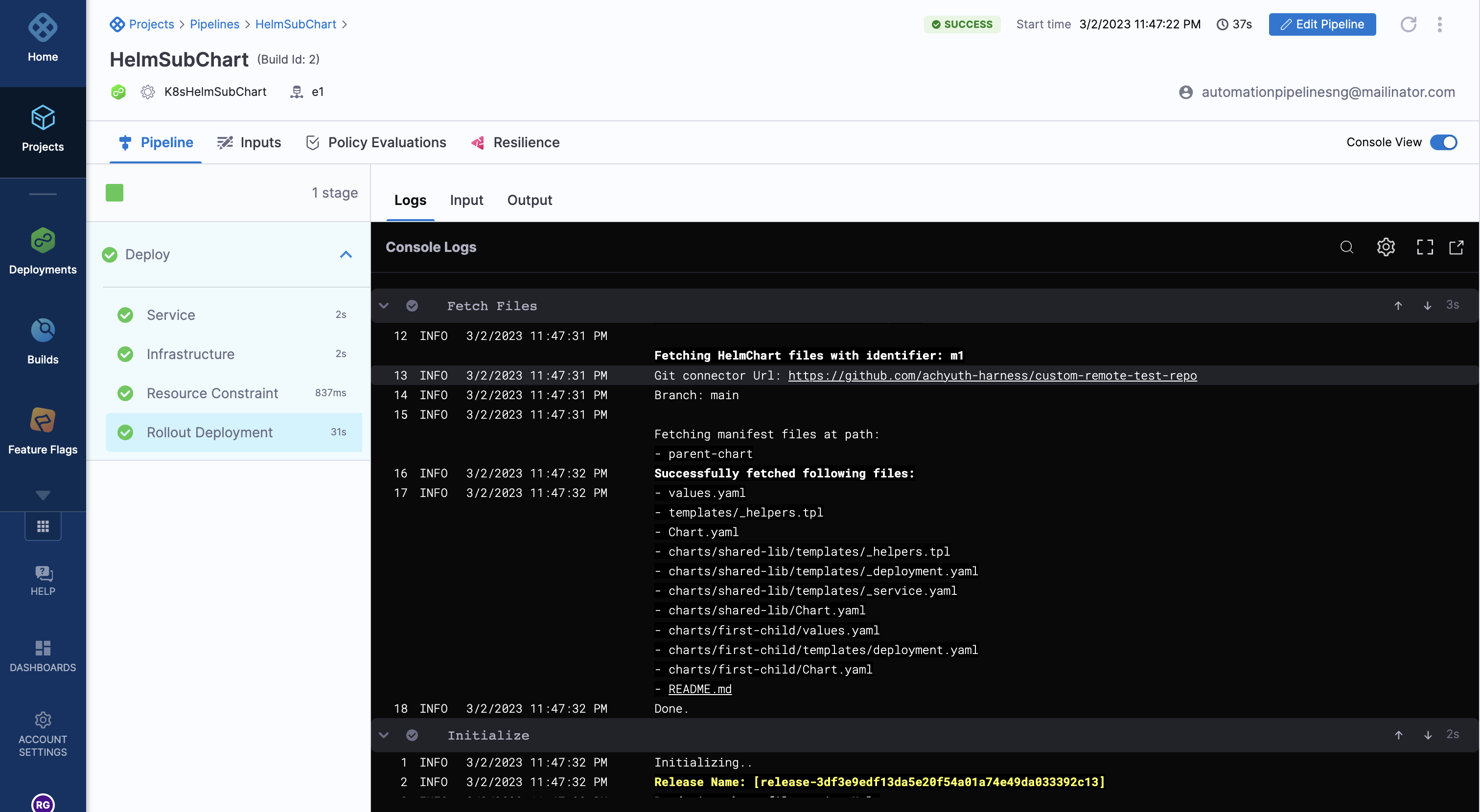 - Harness will then query the deployed resources to show a summary of what was deployed.