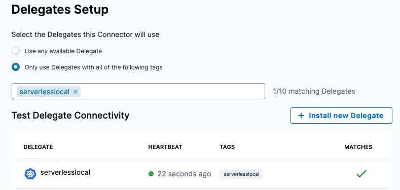 - The delegate pod(s) must have Serverless installed. We'll add the Serverless installation script using the delegate environment variable