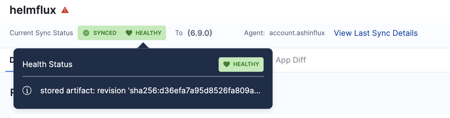 The Health and Sync status indicators now include extended metadata in a popover. Hovering over a status reveals additional context such as sync type, revision, and more. This allows you to quickly assess the application state without leaving the dashboard.