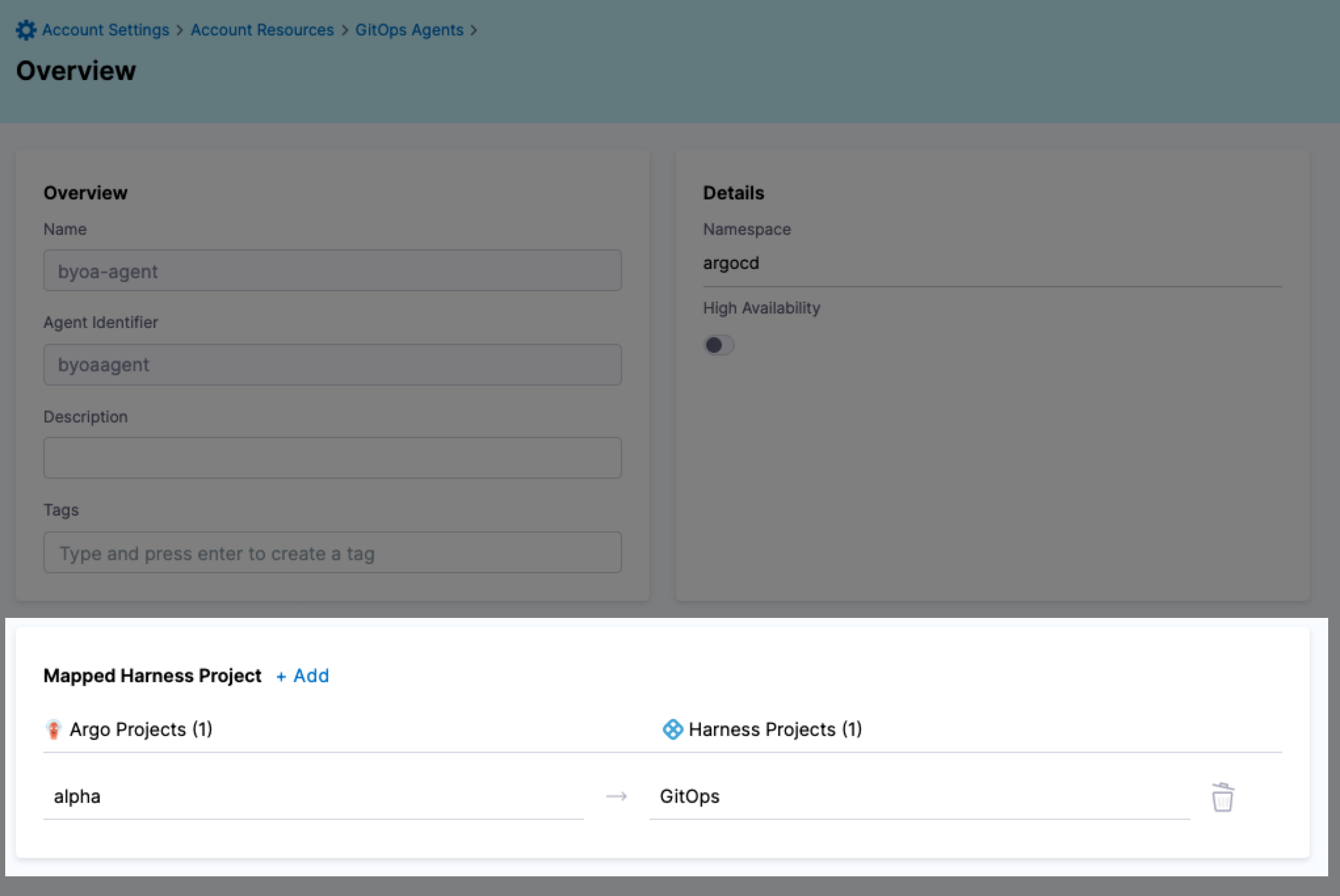 - A non-BYOA setup does not support mapping multiple Argo CD projects to a single Harness project.