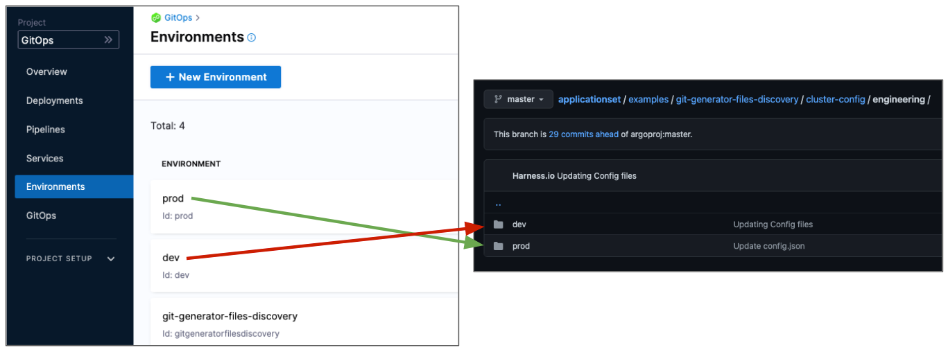 dev,prod) that match your Git repository folder structure. See Create GitOps Environments for detailed instructions. -