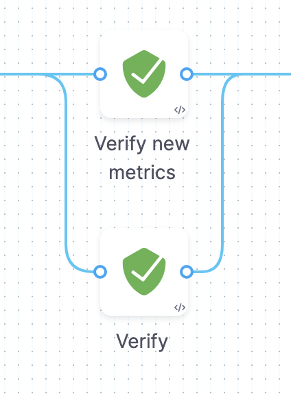 In Canary deployment strategy, the canary pod is compared against the primary pod(s) to verify the code changes. This works well if the metrics which are being used for comparison are present in both the primary and canary pods. However if the canary pod is introducing a new metric, it can also be verified using the Verify step.