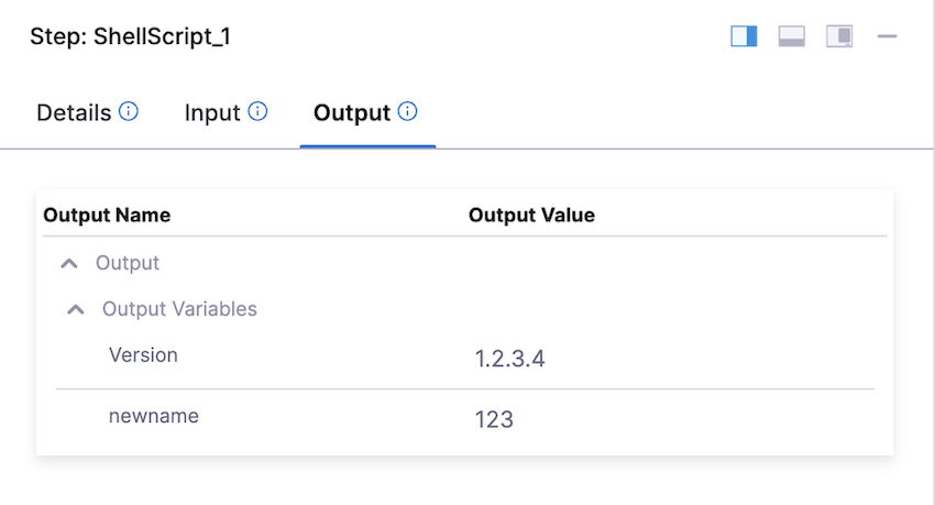 To find the expression to reference your output variables, find the step in the Pipeline execution, and click its Output tab.
