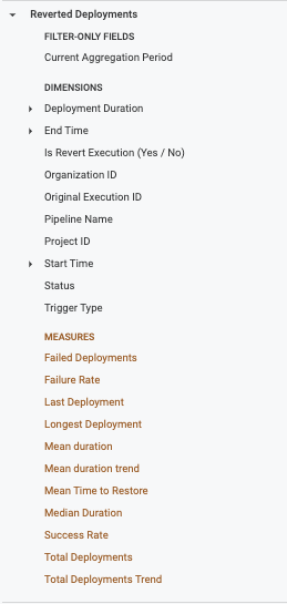 When you select CD-specific fields (for example, from CD Stage Execution Helm Manifest Info, CD Stage Executions, Environments, or Services views), the data displayed will only include CD stage–related executions.