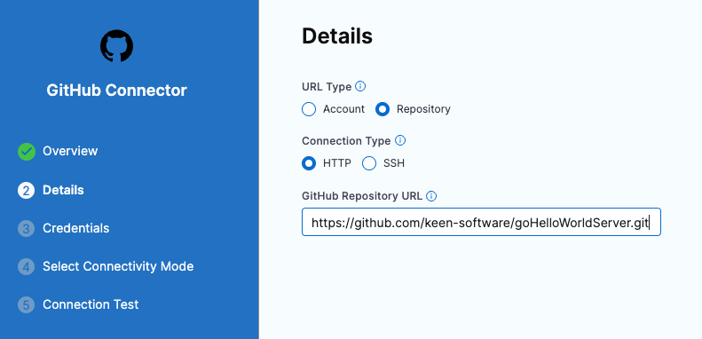 - For Connector, select the GitHub connector you created earlier in Prepare the codebase.