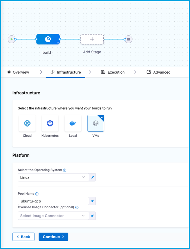 Although you must install a delegate to use a self-managed VM build infrastructure, you can choose to use a different delegate for executions and cleanups in individual pipelines or stages. To do this, use pipeline-level delegate selectors or stage-level delegate selectors.