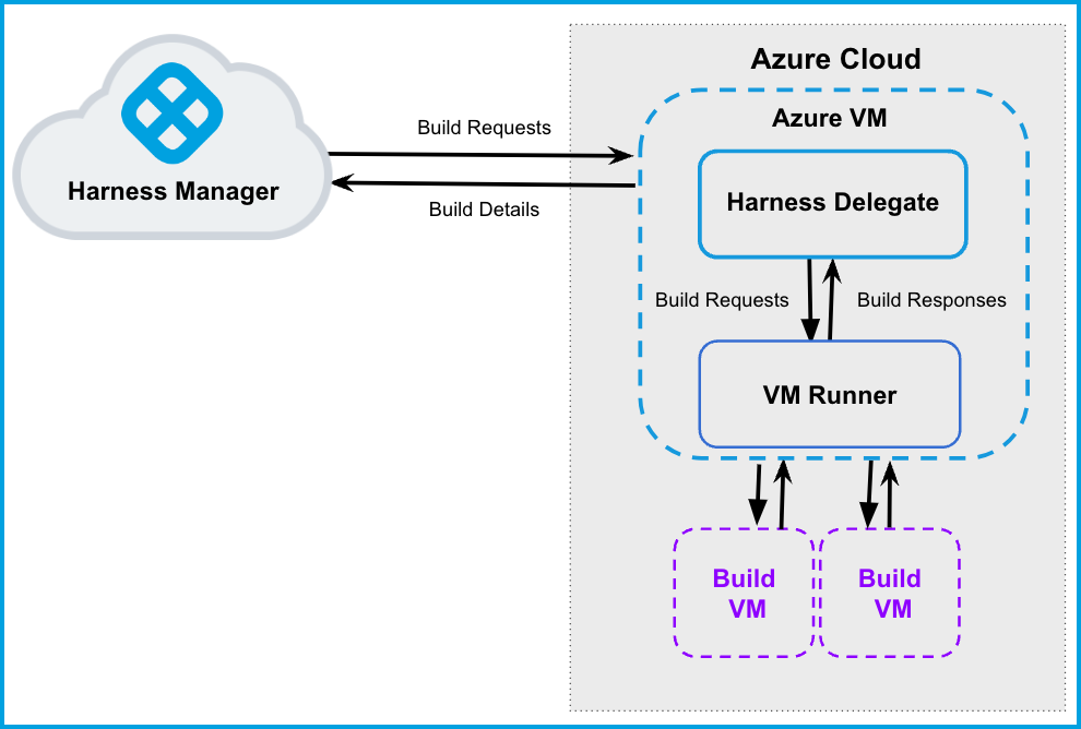 This topic describes how to set up a CI build infrastructure in Microsoft Azure. To do this, you will create a VM and install a Harness Delegate and Drone VM Runner on it. The runner creates VMs dynamically in response to CI build requests. The delegate and runner VM can be inside or outside Azure; however, the instructions on this page assume you will create the VM in Azure.