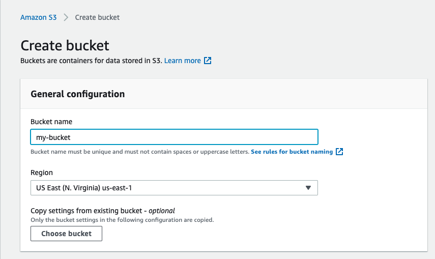 Follow this step only if you do not already have an S3 bucket. If you already have one created, find your Bucket ARN and move to the next step.