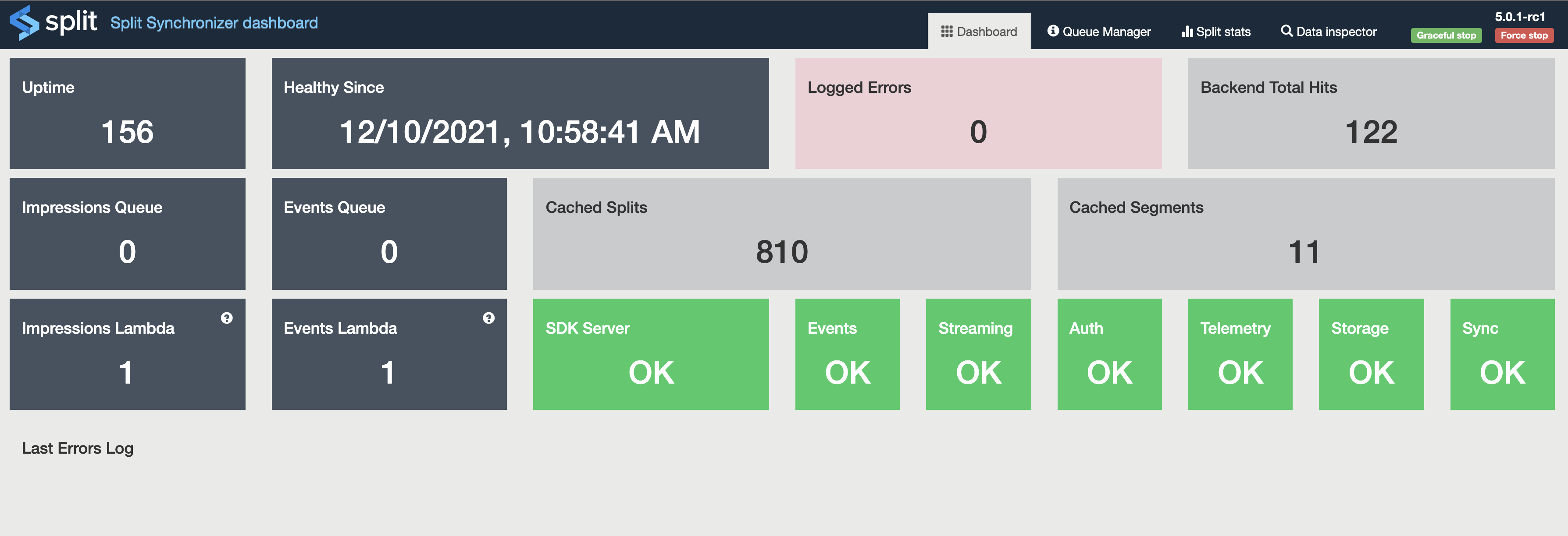 - Auth Server*: displays the status of Split server for initial streaming authentication