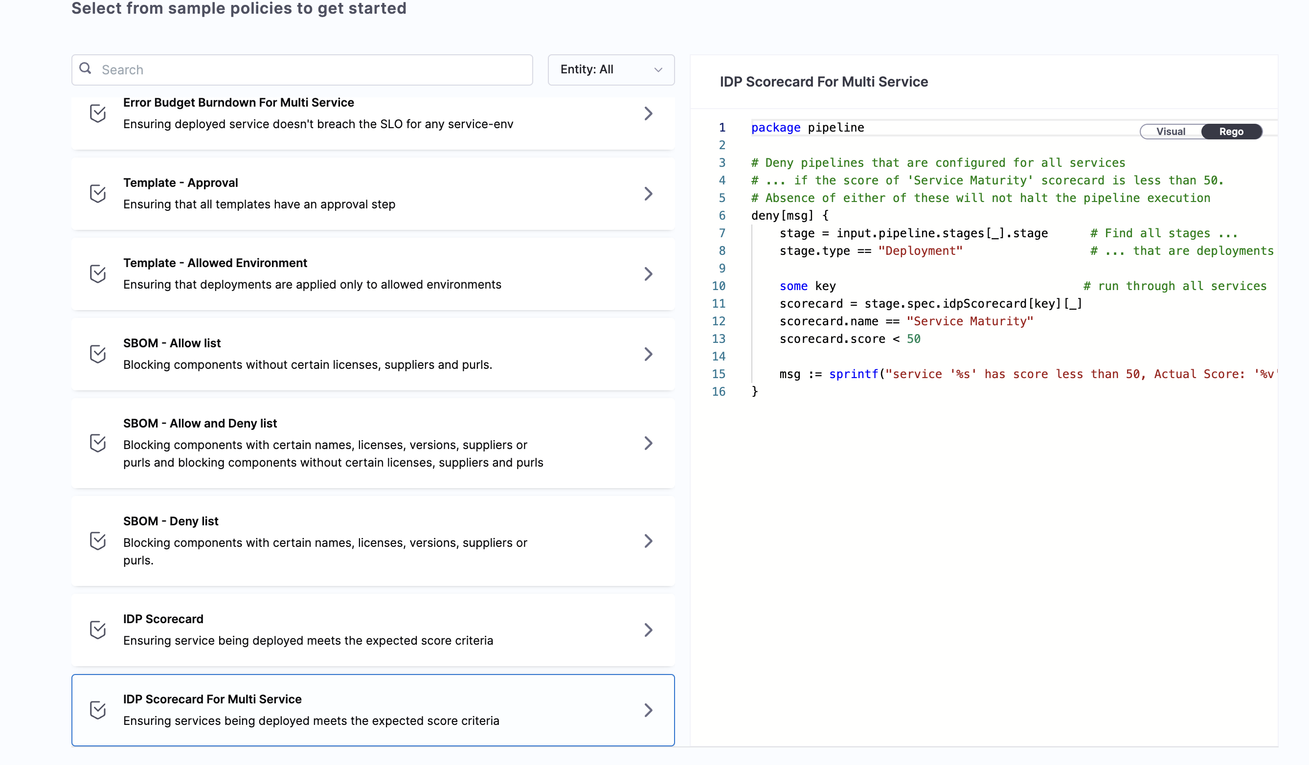 In the REGO script we use stage.spec.idpScorecard.orderService[_] to fetch the Harness service ID mentioned in the annotation harness.io/cd-serviceId: <SERVICE_IDENTIFIER>. If you have followed the onboarding guide then this annotation is auto ingested in your catalog-info.yaml or-else you have to manually add it.