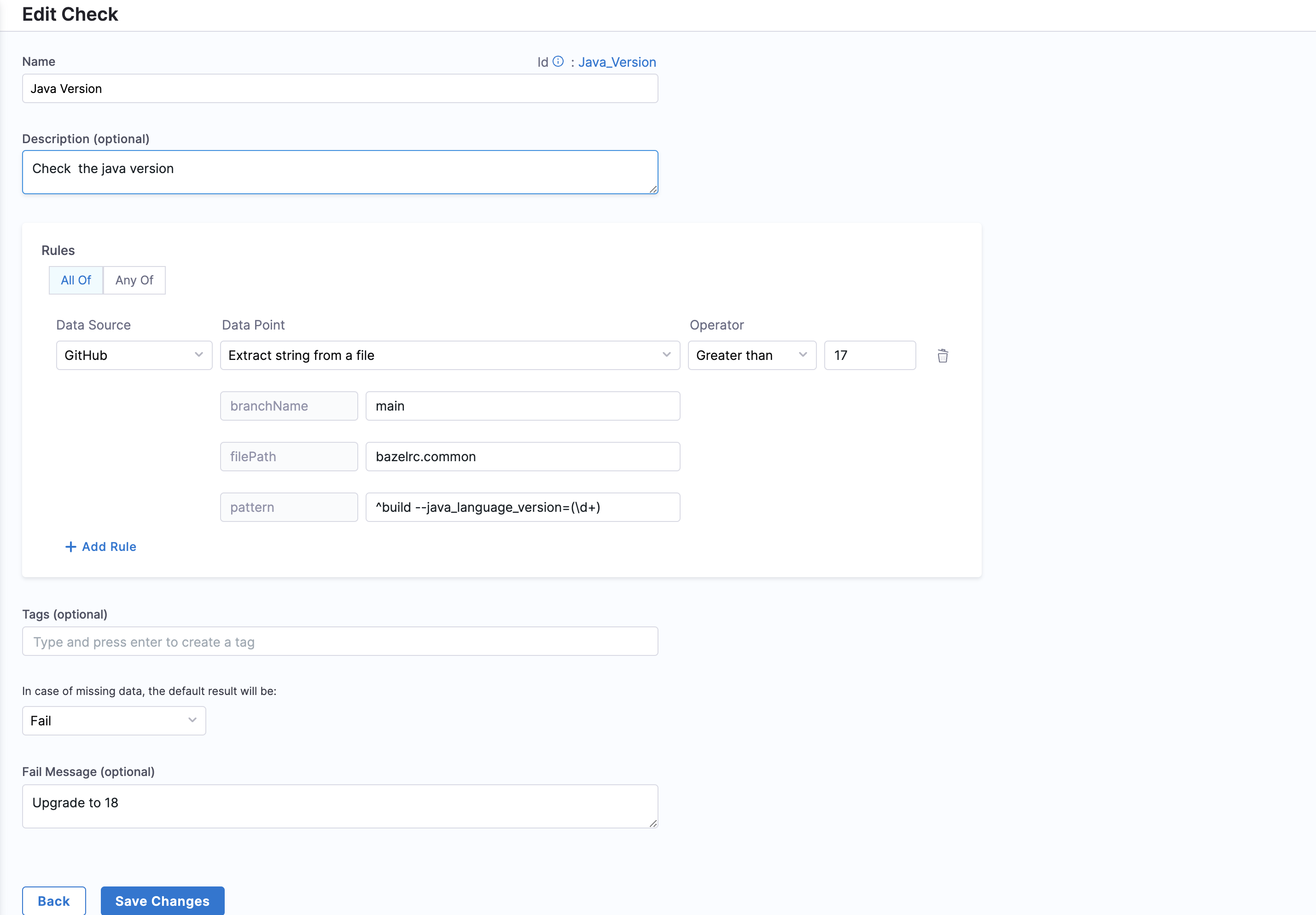 In this tutorial we will be using Scorecards for tracking and driving migrations. Recently we have introduced new Data Points for git based Data Sources to extract information from files using regex patterns. In this tutorial we will be building some custom checks using these Data Points to track library and language versions from the contents of metadata files.