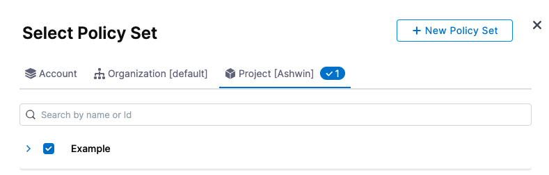 Policy Sets are saved at the Harness account, Organization, or Project level, and where they are saved determines the scope of the Policy Set.