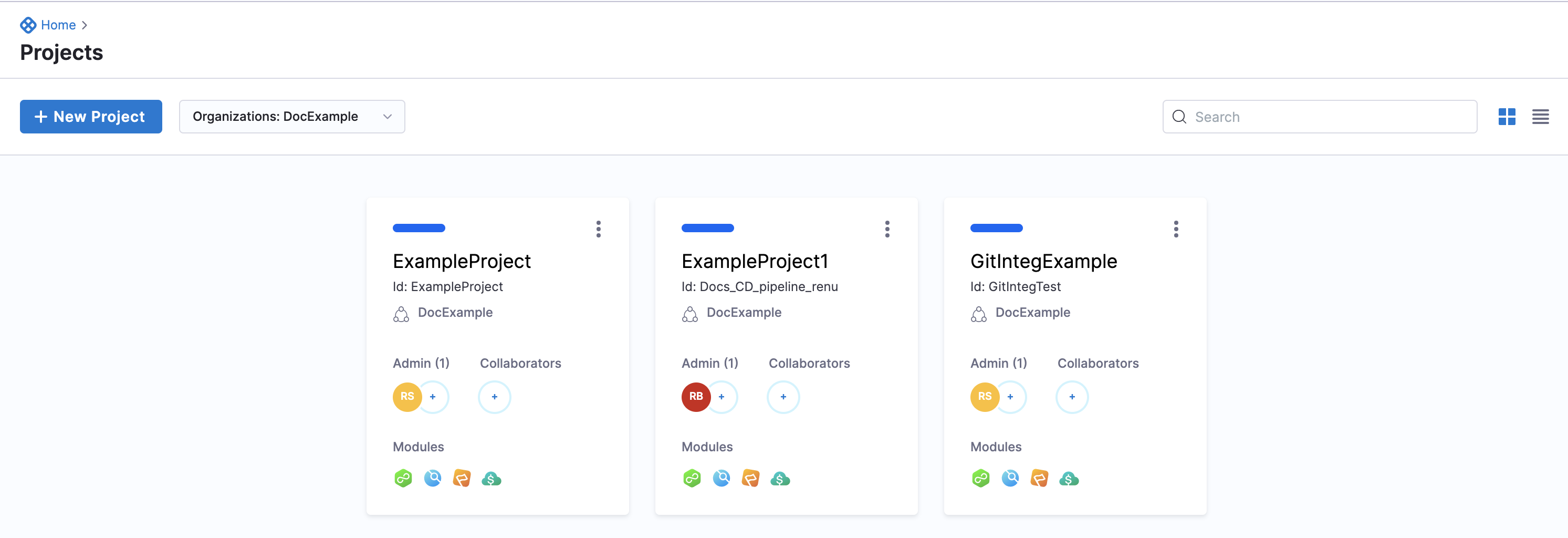 Your project can add Harness products as modules, such as Continuous Integration or Continuous Delivery.