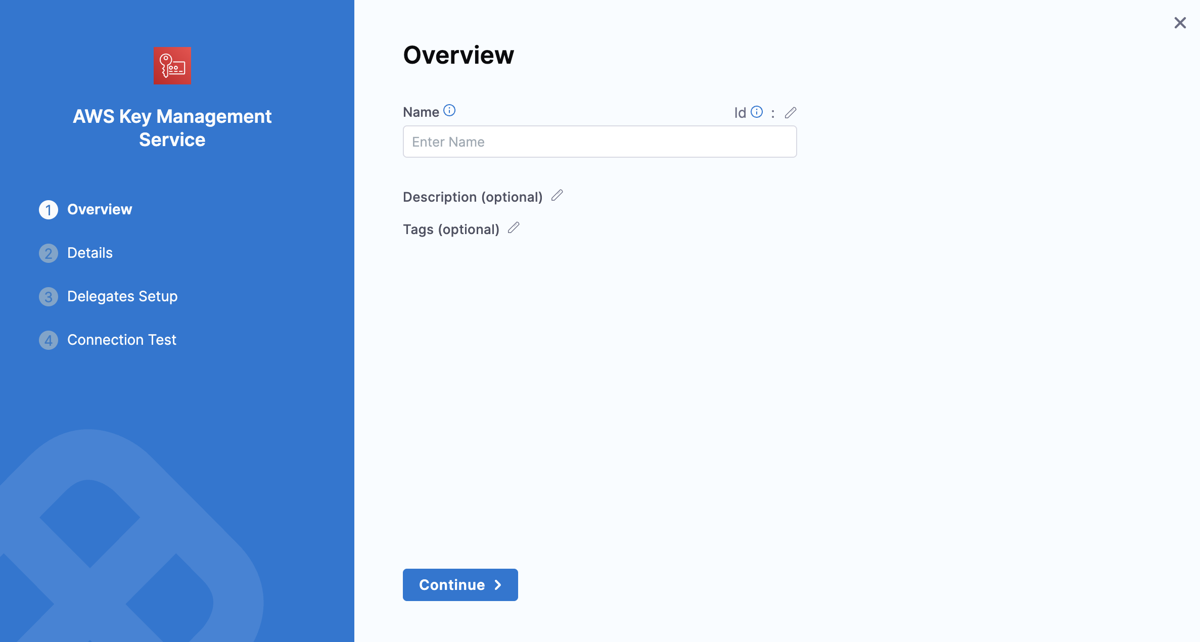 In Delegates Setup, enter Selectors for specific Delegates that you want to allow to connect to this Connector. Select Save and Continue.