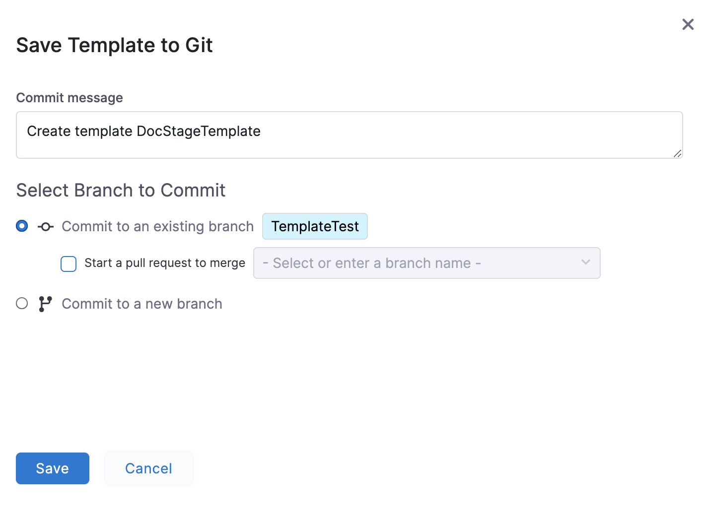 - In Select Branch to Commit, you can select one of the following:
