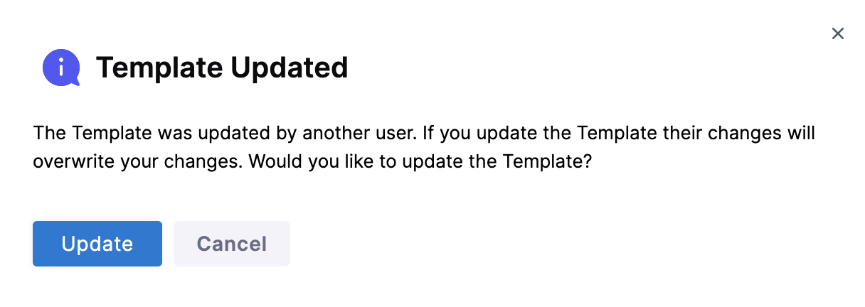 A Template Updated message opens.