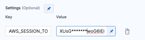 If you need to specify a session token, add it using the key AWS_SESSION_TOKEN under Settings.