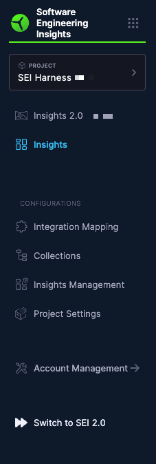 To access the latest SEI 2.0 experience, click Switch to 2.0 below Account Management in the Harness SEI navigation menu.
