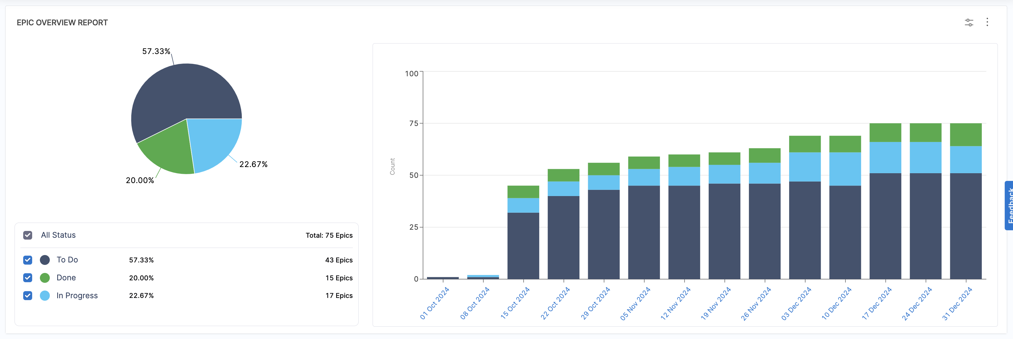 - Status: The state of the epic in the selected time interval (To Do, In Progress, Done).